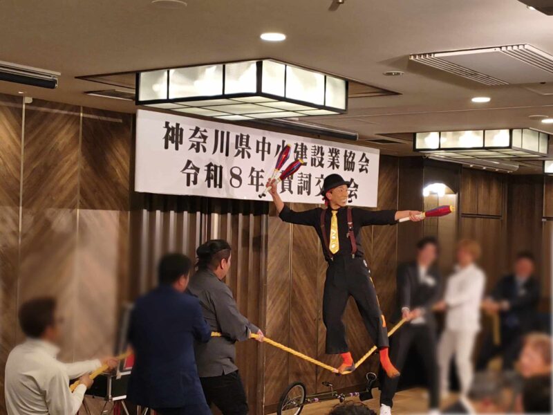 その後は美味しいお食事をいただきながらの歓談となり、会場にはコメディマジックサーカスのムーラさんが登場。ユーモアたっぷりのパフォーマンスで、会場は盛り上がりました。